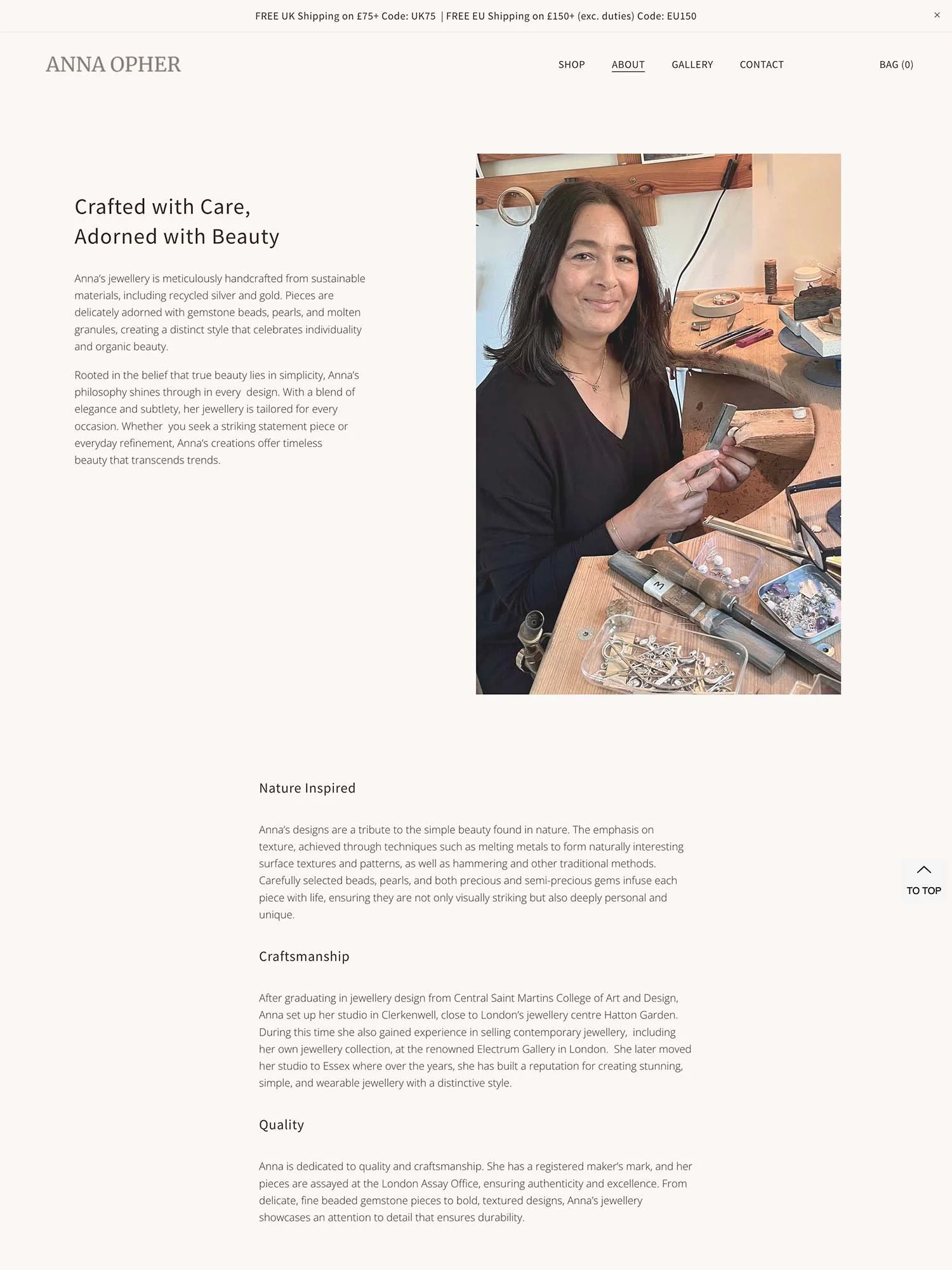 Worked on her artist statement and background to create a more engaging about page that effectively communicates her craftsmanship philosophy and unique approach to jewellery design
